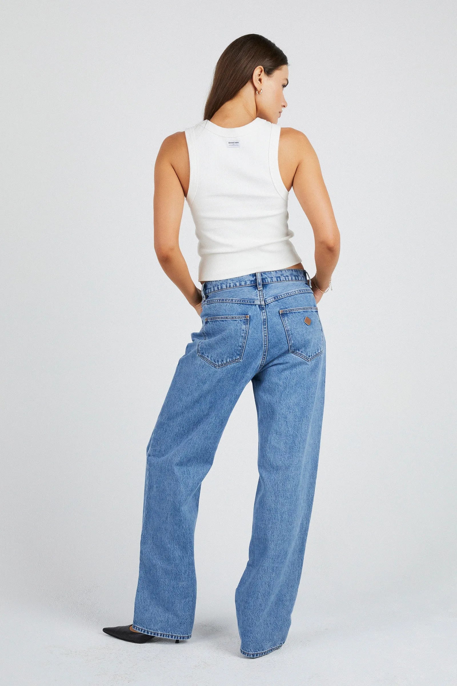 - Features signature Abrand dice logo on the back pocket in tan